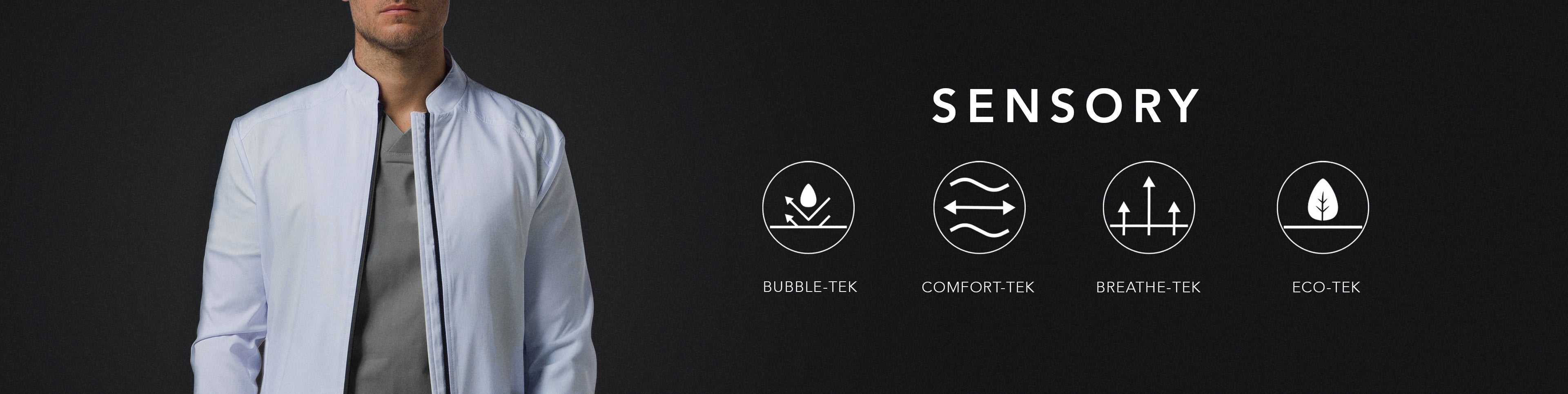 SENSORY COMBINA LO MEJOR DE LA COMODIDAD Y LA FUNCIONALIDAD, CREANDO UN TEJIDO SUAVE Y DE ALTO PERFORMACE QUE TE ACOMPAÑA EN CADA MOVIMIENTO. OUTLAYER-CAPA EXTERNA CUENTA CON TECNOLOGÍA REPELENTE A LIQUIDOS ASEGURA QUE LOS LIQUIDOS SE DESLICEN. INNER-LAYER: CAPA INTERNA ES DONDE ESTA NUESTRA TECNOLOGÍA SENSORY DISEÑADA PARA SER SUAVE, TRANSPIRABLE Y CONFORTABLE, MANTENIÉNDOTE FRESCO Y CÓMODO TODO EL DÍA.